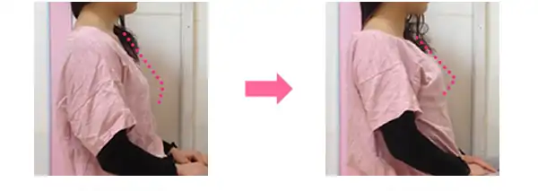 首が前傾して肩が内側入って猫背になると、バストが下がってしまいます…